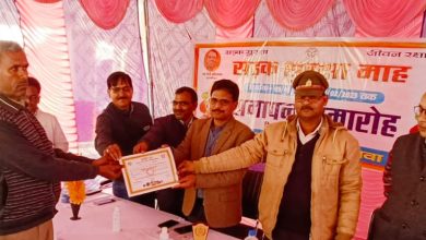 सड़क सुरक्षा माह के समापन कार्यक्रम आयोजित घायल व्यक्ति की मदद करने के लिए श्री जगमोहन निवासी बसरेहर को किया…