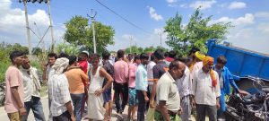 बाइक सवार को रौंदते हुए ट्रैक्टर विद्युत पोल को क्षतिग्रस्त कर बंबा में जा गिरा,मौके पर पहुंची पुलिस