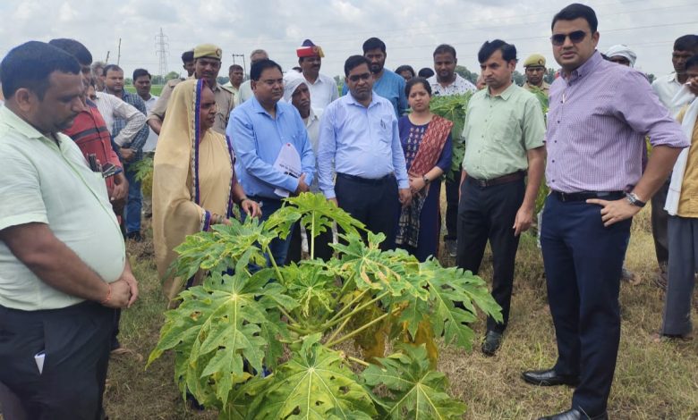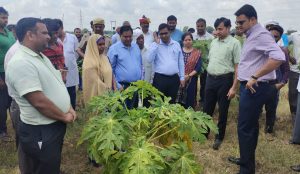 जिलाधिकारी ने किया रेड लेडी 786 ताइवान प्रजाति के खेत का निरीक्षण