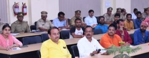 वैठक को सम्बोधित करते हुये जिलाधिकारी ने कहा जितने भी पण्डाल भक्तों द्रारा लगाए गये है उनकी प्रशासन से लिखित रूप से सूचना दे एवं जलूस में छोटे बच्चो को लेकर नही जाए साथ ही पंडाल में आयोजक दो व्यक्तियों की ड्यूटी निर्धारित करें। वरिष्ठ पुलिस अधीक्षक जय प्रकाश सिंह ने कहा नदियों में मूर्ति विसर्जन न करे नदियों के पास गड्डा खोदकर विसर्जन करे साथ ही नहरों में विसर्जन के दौरान साबधानी बरते विसर्जन दिन में ही कर ले।