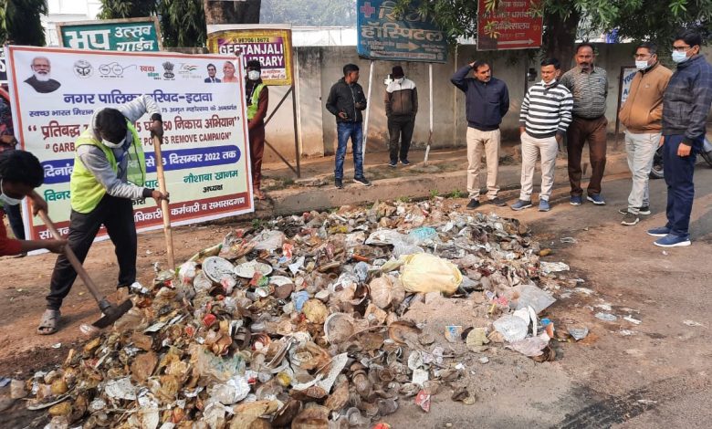 कूड़े के ढेरों को समाप्त कर सेल्फी पाइन्ट बनाने में जुटी नगर पालिका परिषद ,इटावा की टीम