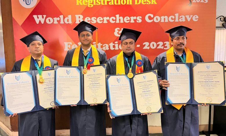 चार शिक्षकों को शिक्षा के क्षेत्र में उत्कृष्ट कार्यों के लिये पीएचडी की उपाधि से किया गया सम्मानित