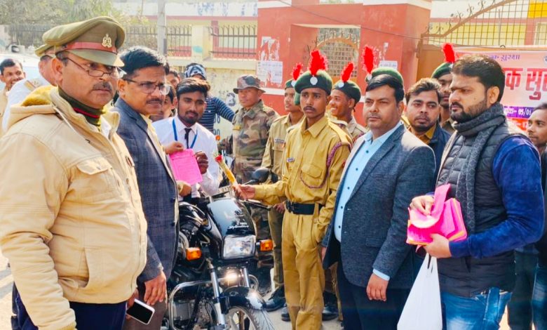 हेलमेट न पहनने वाले दोपहिया वाहन चालकों को हेलमेट पहनने के लिए जागरूक किया गया,