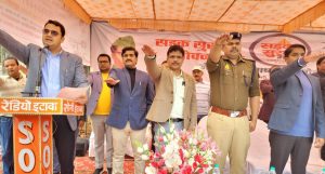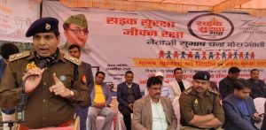 5 जनवरी 2023 से 4 फरवरी 2023 तक मनाए जाने वाले सड़क सुरक्षा माह के 19वें दिन दिनांक 23 जनवरी 2023 नेताजी सुभाष चंद्र बोस जयंती के अवसर पर डीएम चौराहे से एसएसपी चौराहे तक सड़क सुरक्षा के नियमों के प्रति जागरूकता हेतु जनपद के 14 शिक्षण संस्थानों एवं सभी विभागों, एनजीओ, एनसीसी स्काउट गाइड एनएसएस, बेसिक शिक्षा, माध्यमिक शिक्षा, उच्च शिक्षा के द्वारा मानव श्रृंखला बनाई गई । जनपद स्तर पर आयोजित कार्यक्रम में वरिष्ठ पुलिस अधीक्षक श्री संजय कुमार वर्मा द्वारा सड़क सुरक्षा के नियमों के प्रति जागरूकता हेतु दो पहिया वाहन चालकों को हेलमेट लगाने के लिए एवं चार पहिया वाहन चालकों को सीट बेल्ट लगाकर वाहन चलाने तथा यातायात नियमों का पालन करने तथा चौराहों पर यातायात पुलिस के वाहनों की जांच करने पर प्रायः लोग तेज गति से वाहन चलाकर भागने की प्रवृत्ति को छोड़ने के लिए जागरूक किया साथ ही साथ चौराहों पर हमेशा वाहन धीरे चलाने के लिए अपील की गई, जिलाधिकारी महोदय द्वारा पारिवारिक सदस्यों को अपने घर से निकलने वाले व्यक्तियों को हेलमेट न पहनने पर तथा सीट बेल्ट न पहने पर उनको रोकने की अपील की, उनके द्वारा यह कहा गया कि यदि पारिवारिक सदस्य अपने परिवार को जागरूक करें .इससे सड़क सुरक्षा के नियमों के प्रति लोगों में जागरूकता आएगी तथा निसंदेह इससे सड़क दुर्घटनाओं में कमी आएगी, सड़क दुर्घटनाओं को रोकने के लिए हमें इस जागरूकता कार्यक्रम को एक जन आंदोलन के रूप में परिवर्तित करना होगा जिससे अधिक से अधिक लोगों की जान बचाई जा सके अपने संबोधन के पश्चात जिलाधिकारी महोदय द्वारा सड़क सुरक्षा नियमों के पालन हेतु शपथ दिलाई गई