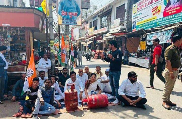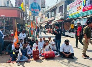 सिलेंडर रख कर नगर पालिका चौराहे पर कांग्रेसियों ने किया प्रदर्शन