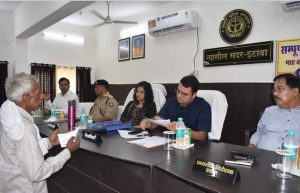 इटावा 20 मई 2023 सम्पूर्ण समाधान दिवस में प्राप्त होने वाली जन शिकायतों का निर्धारित समय सीमा के अन्दर गुणवत्ता पूर्वक निस्तारण किये जाने, अवैध कब्जा से संबंधित शिकायतों के निस्तारण हेतु पुलिस,राजस्व की संयुक्त टीमें गठित कर मौके पर भेजकर तत्काल समस्या का निराकरण कराये जाने के निर्देश दिये।