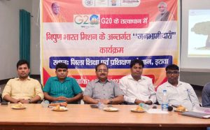 इटावा G20 के तत्वाधान में जनभागीदारी कार्यक्रम के तहत नई शिक्षा नीति 2020, बुनियादी साक्षरता तथा निपुण भारत मिशन, डिजिटल लर्निंग विषय पर एक दिवसीय कार्यशाला का आयोजन जिला शिक्षा एवं प्रशिक्षण संस्थान इटावा ने किया गया। कार्यक्रम का शुभारंभ प्राचार्य डायट एस.पी. यादव जिला बेसिक शिक्षा अधिकारी शैलेश कुमार एवं लेखा अधिकारी राजकुमार यादव ने दीप प्रज्वलन एवं मां सरस्वती की प्रतिमा पर माल्यार्पण के साथ किया।