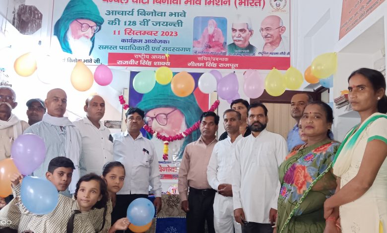 प्रथम राष्ट्रपति महा महिम डॉक्टर राजेंद्र प्रसाद द्वारा 1960 से मान्यता प्राप्त चंबल घाटी विनोबा भावे मिशन भारत के संस्थापक आचार्य विनोबा भावे जी का जन्मोत्सव चंबल घाटी विनोबा भावे मिशन से जुड़े पदाधिकारी व कार्यकर्ताओं सदस्यों ने सर्वसम्मति से एक जुट होकर बड़े ही धूमधाम से मनाया