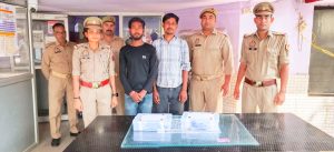 वरिष्ठ पुलिस अधीक्षक फिरोजाबाद द्वारा लोकसभा चुनाव 2024 के दृष्टिगत नाजायज शस्त्रों की तस्करी करने वाले अभियुक्त की गिरफ्तारी हेतु दिये गये निर्देशन के अनुपालन में अपर पुलिस अधीक्षक नगर के पर्यवेक्षण एवं क्षेत्राधिकारी नगर के कुशल नेतृत्व में दिनांक 03.05.2024 को थाना रामगढ़ पुलिस द्वारा चैकिंग संदिग्ध व्यक्ति / वाहन के दौरान मुखबिर की सूचना पर सरजीवन पेट्रोल पम्प के बाँयी ओर खाली प्लाट थाना रामगढ जिला फिरोजाबाद से 02 अभियुक्तों 1. जितेन्द्र पुत्र सुरेश, 2.अभिषेक पुत्र शेर सिंह को गिरफ्तार किया गया । अभियुक्तों के कब्जे से 02 नाजायज तमंचा 315 बोर व 02 जिंदा कारतूस 315 बोर बरामद हुए । बरामदगी व गिरफ्तारी के आधार पर अभियुक्तों के विरुद्ध थाना रामगढ़ पर मुकदमा पंजीकृत कर माननीय न्यायालय के समक्ष पेश किया गया है । गिरफ्तारी का दिनांक समय स्थानः- दिनाँक 03.05.2024 समय करीब 07.45 बजे, सरजीवन पेट्रोल पम्प के बाँयी ओर खाली प्लाट थाना रामगढ जनपद फिरोजाबाद ।