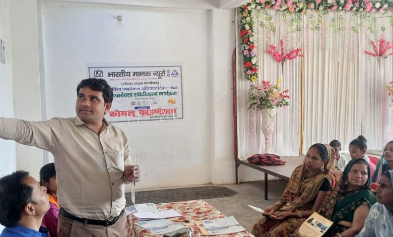 इस अवसर पर उपभोक्ता संरक्षण अधिनियम, 2019 के महत्वपूर्ण प्रावधानों, उपभोक्ता शिकायत निवारण प्रक्रियाओं और जागरूक उपभोक्ता बनने के उपायों पर चर्चा की गई। कार्यक्रम के दौरान कोमल फाउंडेशन के अध्यक्ष अश्वनी कुमार राजौरिया ने स्वयं सहायता समूह की महिलाओं को जागरूक करते हुए कहा कि गुणवत्ता और सुनिश्चित करने के लिए उपभोक्ताओं को जागरूक करना बेहद आवश्यक है। मानकों के प्रति जानकारी बढ़ने से उपभोक्ता बेहतर और सुरक्षित खरीदारी कर सकते हैं। बीआईएस ने उपभोक्ताओं को उत्पादों की गुणवत्ता जांचने में सहायता के लिए ‘बीआईएस केयर’ ऐप लॉन्च किया है। इस ऐप के माध्यम से उपभोक्ता उत्पादों की गुणवत्ता की जांच कर सकते हैं और अपनी शिकायतें दर्ज करा सकते हैं।उन्होंने उपभोक्ताओं को फर्जीवाड़े, मिलावट और भ्रामक विज्ञापनों से बचने की सलाह दी। साथ ही, डिजिटल खरीदारी के बढ़ते चलन को देखते हुए ऑनलाइन ठगी से सुरक्षित रहने के उपायों पर भी जानकारी दी। संस्कारशाला की शिक्षिका भावना राठौर ने महिला उपभोक्ताओं को हेल्पलाइन नंबर, उपभोक्ता अदालतों की प्रक्रिया और शिकायत दर्ज करने के तरीकों की विस्तृत जानकारी प्रदान की। इस दौरान बीआईएस के जागरूकता पोस्टर, पुस्तिकाएँ भी वितरित की गईं। कार्यक्रम में कोमल फाउंडेशन के अनिल कुमार वर्मा, इंडियन गांधी, विनीता राठौर, पूजा, प्रियंका, कविता वर्मा एवं विभिन्न स्वयं सहायता समूहों की महिलाएं उपस्थित रही।