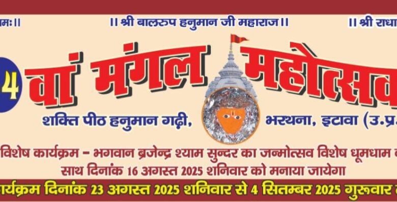 हनुमानगढ़ी, भरथना में 44वां मंगल महोत्सव 23 अगस्त से, 13 दिवसीय धार्मिक आयोजन में होंगे भजन, कथा, रासलीला व विशाल मेला
