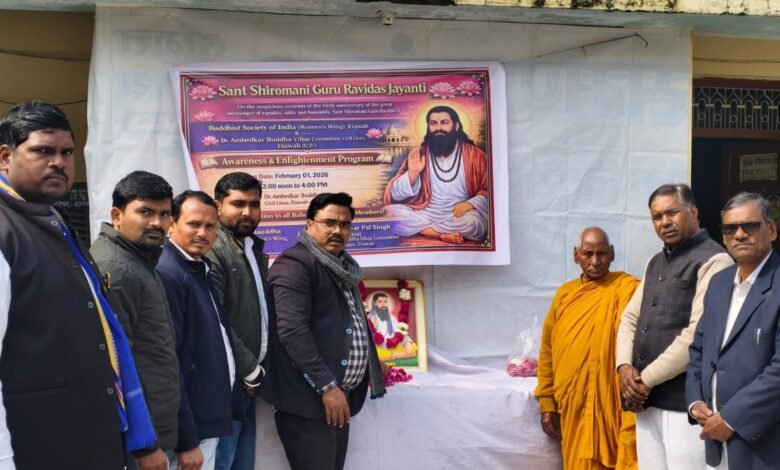 इटवा । बुद्ध बिहार अंबेडकर पार्क सिविल लाइन में संत शिरोमणि रविदास जी की जयंती बड़े ही हर्षोल्लास के साथ मनाई गई । इस अवसर पर डॉ भीमराव अंबेडकर बुद्ध बिहार समिति ,भीम आर्मी एवं आजाद समाज पार्टी व बी एस आई इटावा महिला विंग, एवं इंसानी भाईचारा एवं प्रेम सदभाव समिति द्वारा एक कार्यक्रम का आयोजन रखा गया। जिसमें लोगों ने बढ़ चढ़ कर हिस्सा लिया। इस कार्यक्रम में संत शिरोमणि रविदास जी के उपदेशों को याद किया गया। इस दौरान आजाद समाज पार्टी कांशीराम के कानपुर मंडल प्रभारी अभिषेक आजाद , भीम आर्मी प्रभारी प्रशांत गौतम,पूर्व जिलाध्यक्ष जय प्रकाश जाटव, एडवोकेट संदीप भारती, बी एस आई महिला बिंग की अध्यक्ष किरन मेहरा बौद्ध आदि ने संयुक्त रूप से कहा कि संत शिरोमणि रविदास जी कहते थे कि”मन चंगा तो कटौती में गंगा”इस का अर्थ है कि यदि व्यक्ति का मन शुद्ध है तो वह व्यक्ति गंगा के समान पवित्र है। जयंती समारोह में भंते , मोहम्मद आमीन, मोहित जाटव ,शिव कुमार कठेरिया , विक्की कठेरिया पक्का बाग,महेंद्र प्रताप सिंह, कैलाश बौद्ध, डॉ अनवर सिंह गौतम आदि लोगों की उपस्थित उल्लेखनीय रही। मोहम्मद आमीन
