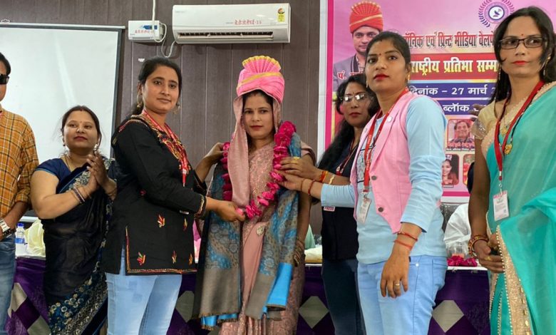 इलेक्ट्रॉनिक एवं प्रिंट मीडिया वेलफेयर एसोसिएशन की टीम द्वारा सपना सिंह सैफई को पुष्पहार पगड़ी पहनाकर अंग वस्त्र प्रतीक चिन्ह भेंट कर किया गया सम्मानित