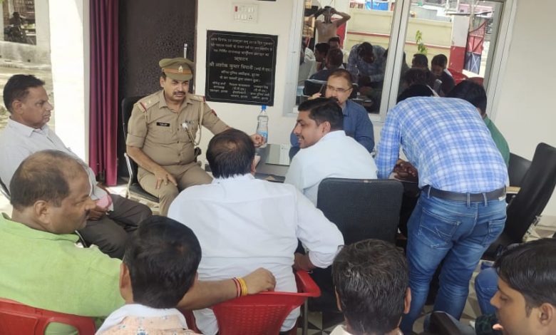 थाना ऊसराहार में अतिक्रमण हटाने के लिए व्यापारियों के साथ की बैठक